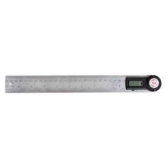 Компактные размеры и возможность измерения углов до 360° позволяют использовать угломер при монтаже полок, окон и других бытовых работах. К тому же, угломер удобно хранить и транспортировать в ходе работ. Основные части прибора изготовлены из нержавеющей стали, благодаря чему обеспечивается долгий срок работы цифрового угломера RGK A-30. Угломер вы можете использовать и в качестве стандартной линейки, за счет конструкции из 2 раздвижных плоских частей со шкалами в см и дюймах. С помощью специальной регулирующей ручки вы можете зафиксировать измерения под любым углом, что позволяет использовать прибор качестве угольника, а также переносить результаты измерения в чертежи.