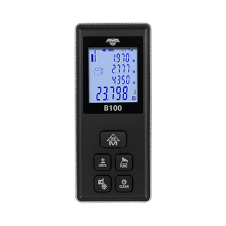Лазерный дальномер AMO B100 - многофункциональный прибор с широким диапазоном измерений от 3 см до 100 м и точностью до ±2 мм. Подсветка экрана позволяет использовать прибор при слабом освещении.