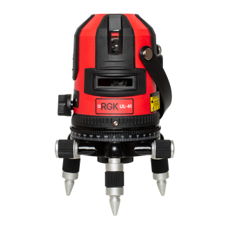 RGK UL-41 строит четыре вертикальных плоскости и горизонтальную с развёрткой 110°, благодаря чему устройство может охватить все стены помещения с одной позиции. Поворотный корпус UL-41 с двумя винтами наводки снабжен горизонтальным лимбом и позволяет аккуратно и точно перенести плоскость на нужную поверхность. Лазер UL-41 обеспечивает чёткую линию на любой поверхности на дистанции до 20 метров в помещении, а с использованием приемника лазерного излучения дистанция возрастает до 50 метров с возможностью использования прибора при ярком освещении. Точность построения линии составляет 0,2 мм на 1 м.