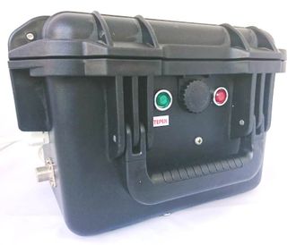 Ретранслятор ТЕРЕК РК-4500М выполнен в влагозащищенном удароустойчивом корпусе имеющим складную эргономичную ручку для переноски.