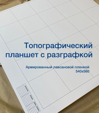 Планшет топографический (540х560 мм), на лавсановой пленке, обклеен ватманом с двух сторон с разграфкой