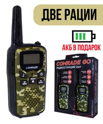 Рацию Comrade Go 1 Military подходит для различных целей, рации Go1 выгодно отличаются от других моделей в своем классе. Камуфляжная радиостанция Comrade Go 1 включает в себя 8 каналов и 99 субтонов, что позволят не принимать нежелательные сигналы. Портативная рация на батарейках Комрейд Go 1 осуществляет питание с помощью аккумуляторов типа AAA NiMH 1,2В или щелочных батареек типа AAA 1,5В, которые идут в комплекте к радиостанции Comrade Go 1.