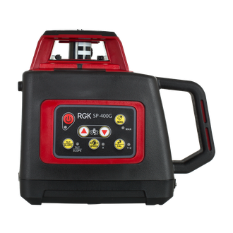 Ротационный нивелир RGK SP-400G оснащён зелёным лазером. Зелёный луч ярче и лучше заметен при ярком свете, а также позволяет использовать два уровня одновременно, отличая плоскости по цвету. RGK SP-400G — один из самых доступных зелёных ротационных нивелиров в своём классе.